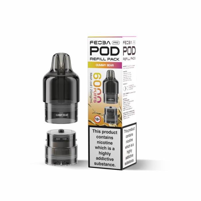 Feoba Pro 6000 refill packs feature a total 12ml of 20mg nic salt e-liquid. The blend of nic salts will provide a smoother throat hit along with faster craving satisfaction. As the pod features a mesh coil, it'll improve vapour production and boost flavour. Once the pod and refill container run out of vape juice, simply replace them with a new refill pack. You'll find them in a range of ice, mint, fruit, soda and candy-inspired blends.