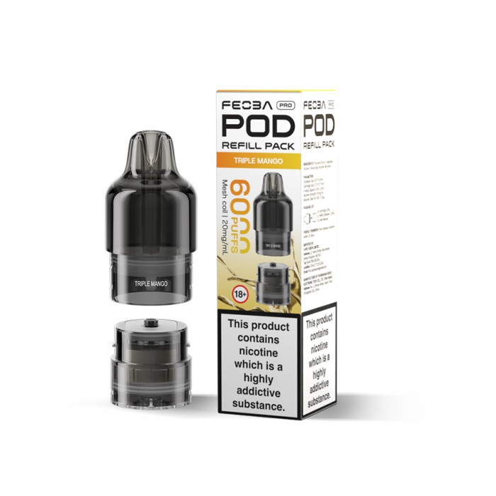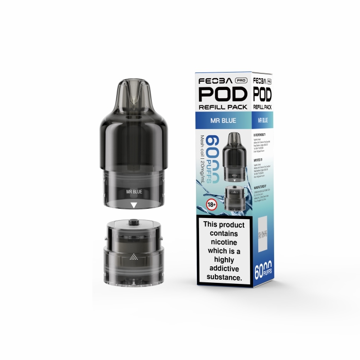 The Feoba Pro 6000 refill packs are designed for the Feoba Pro 6000 vape kit. Each pack contains a prefilled 2ml pod that houses a mesh coil, along with a 10ml refill container that tops up the pod as you vape. Delivering up to 6000 puffs and a familiar MTL (Mouth To Lung) inhale, they mimic the feel of a cigarette, so they're great if you're just making the switch or looking for a reusable option.
