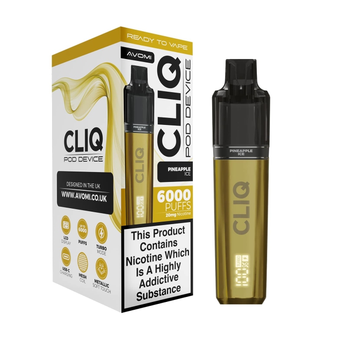 If you want a device that lasts longer than a conventional device, the Avomi Cliq 6000 pod kit is a reusable big puff vape kit perfect for you. Compatible with Avomi Cliq 6000 Puff Prefilled Pods .With a total of 12ml of 20mg nic salt e-liquid in the shape of a 2ml pod containing a mesh coil and a 10ml refill container, it offers up to 6000 puffs. Like a disposable, this MTL (Mouth To Lung) vape generates a little amount of vapour, making it an excellent choice if you wish to change to something reusable. Driven by a 950mAh built-in battery, it will last most vapers a whole day and you can recharge it rapidly via USB-C.