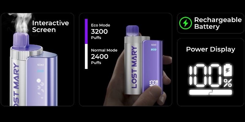 The gadget features an 850mAh rechargeable battery that enables USB-C rapid charging, therefore enabling continuous use with least interruption. Showcasing the first interactive screen in the sector, users may easily monitor pod use, battery level, and vaping settings, thereby improving the whole vaping experience.