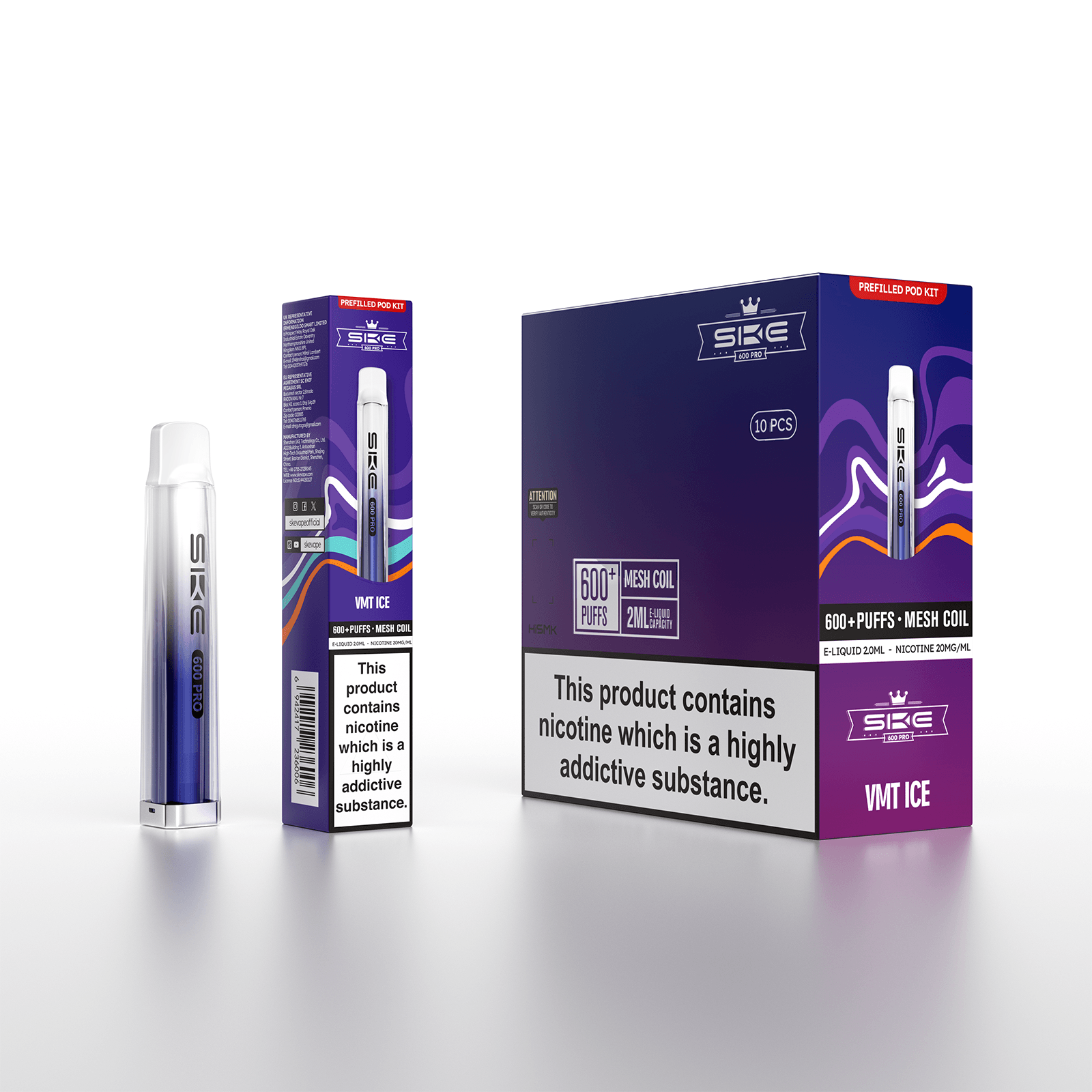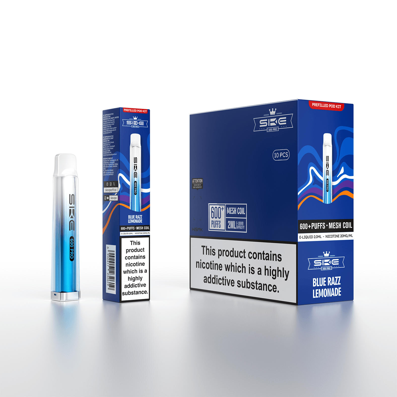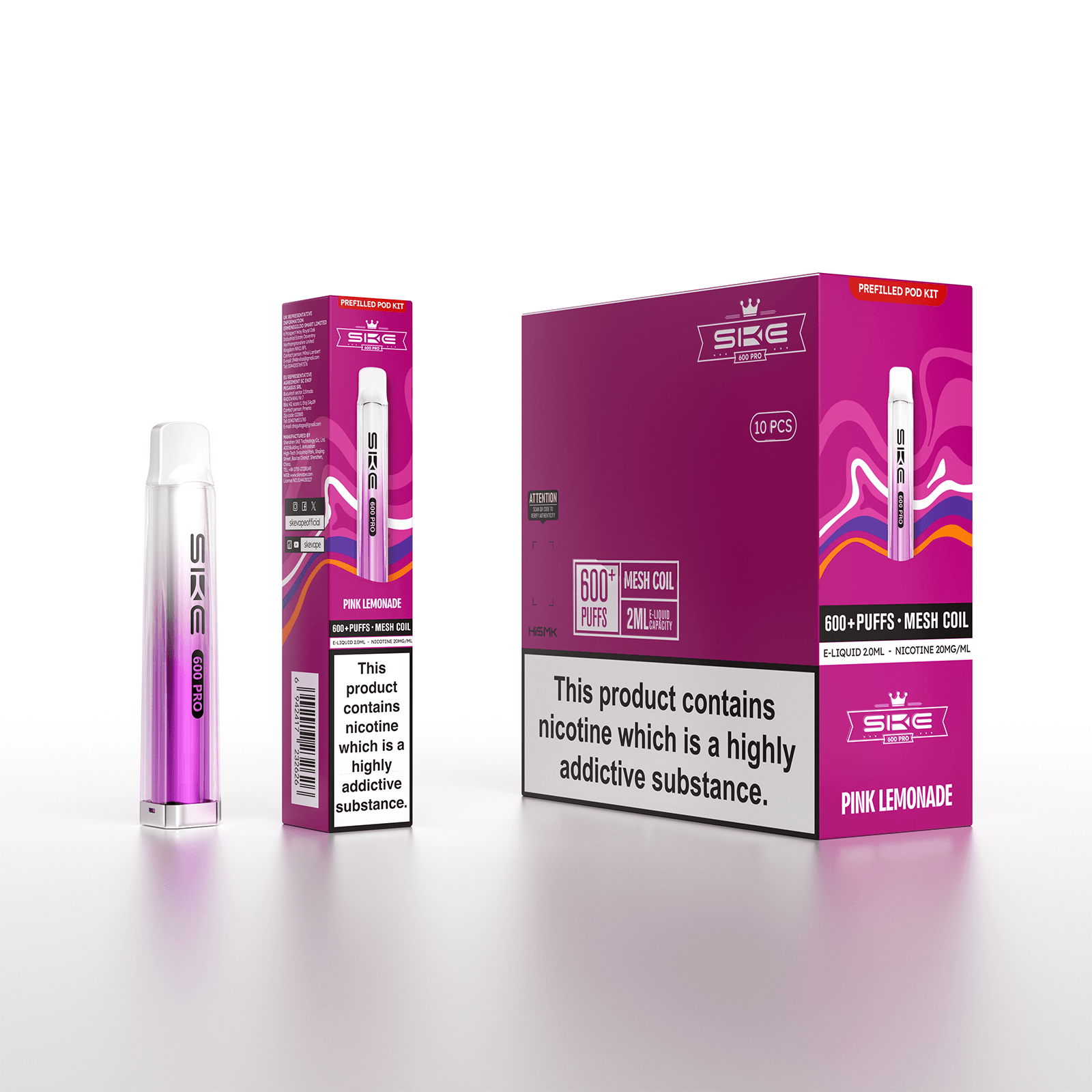 Inspired by their award-winning Crystal Salts Original V2 nic salt combinations, the SKE Crystal Bar 600 Pro prefilled kit has two built-in mesh coil pod cartridges, each with a capacity of 2ml and prefilled with SKE's outstanding 20mg (2%) nic salt e-liquid. With SKE's iconic flavour combinations, this lets users enjoy a seamless mouth-to-- lung (MTL) experience. Afterward, users may quickly replace the pods with the 600 Pro prefilled alternatives from a vivid range of flavours.