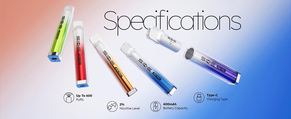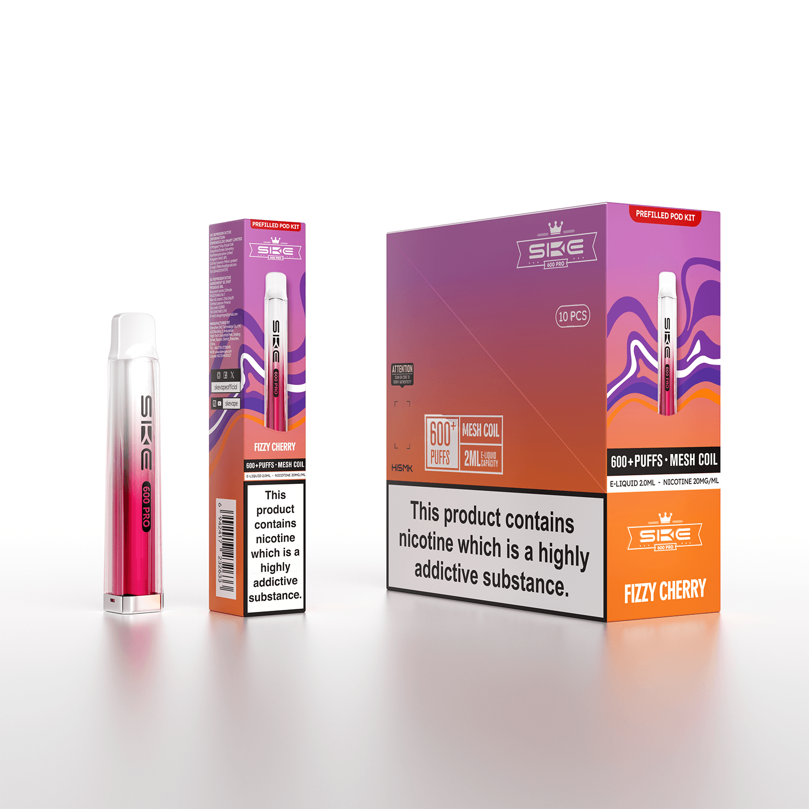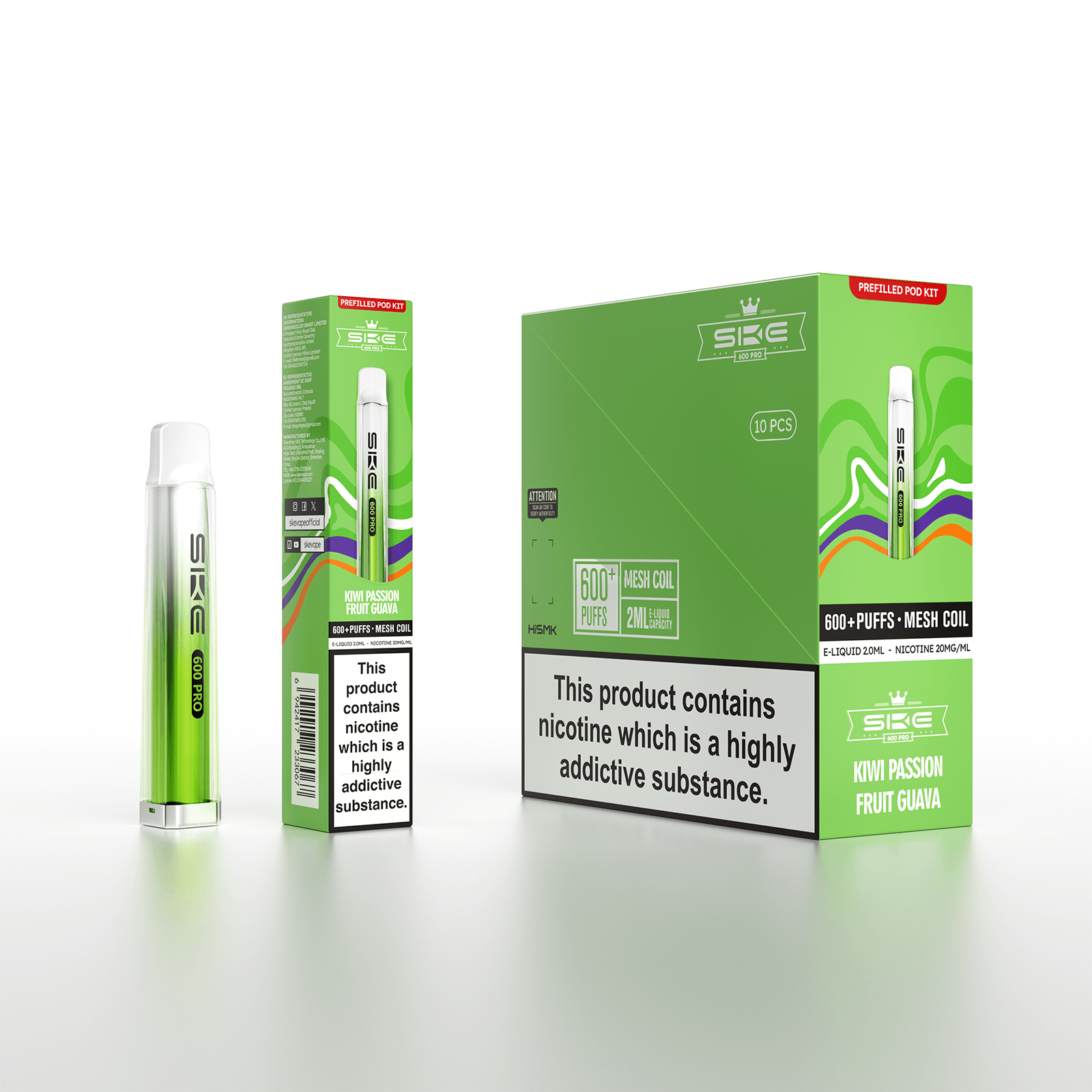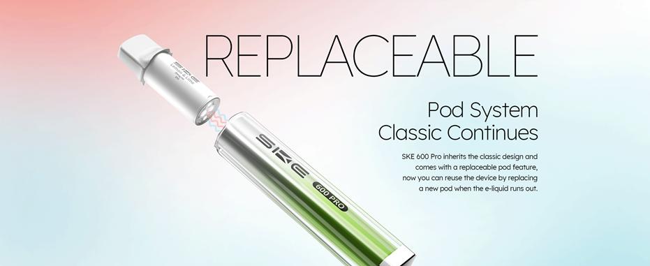 Inspired by their award-winning Crystal Salts Original V2 nic salt combinations, the SKE Crystal Bar 600 Pro prefilled kit has two built-in mesh coil pod cartridges, each with a capacity of 2ml and prefilled with SKE's outstanding 20mg (2%) nic salt e-liquid. With SKE's iconic flavour combinations, this lets users enjoy a seamless mouth-to-- lung (MTL) experience. Afterward, users may quickly replace the pods with the 600 Pro prefilled alternatives from a vivid range of flavours.