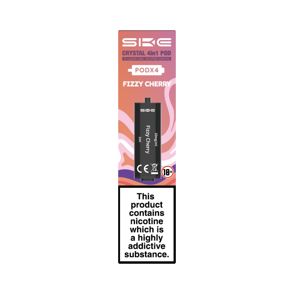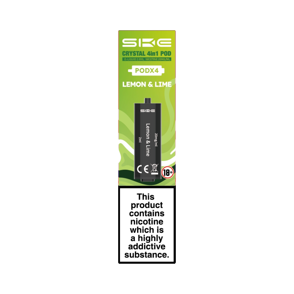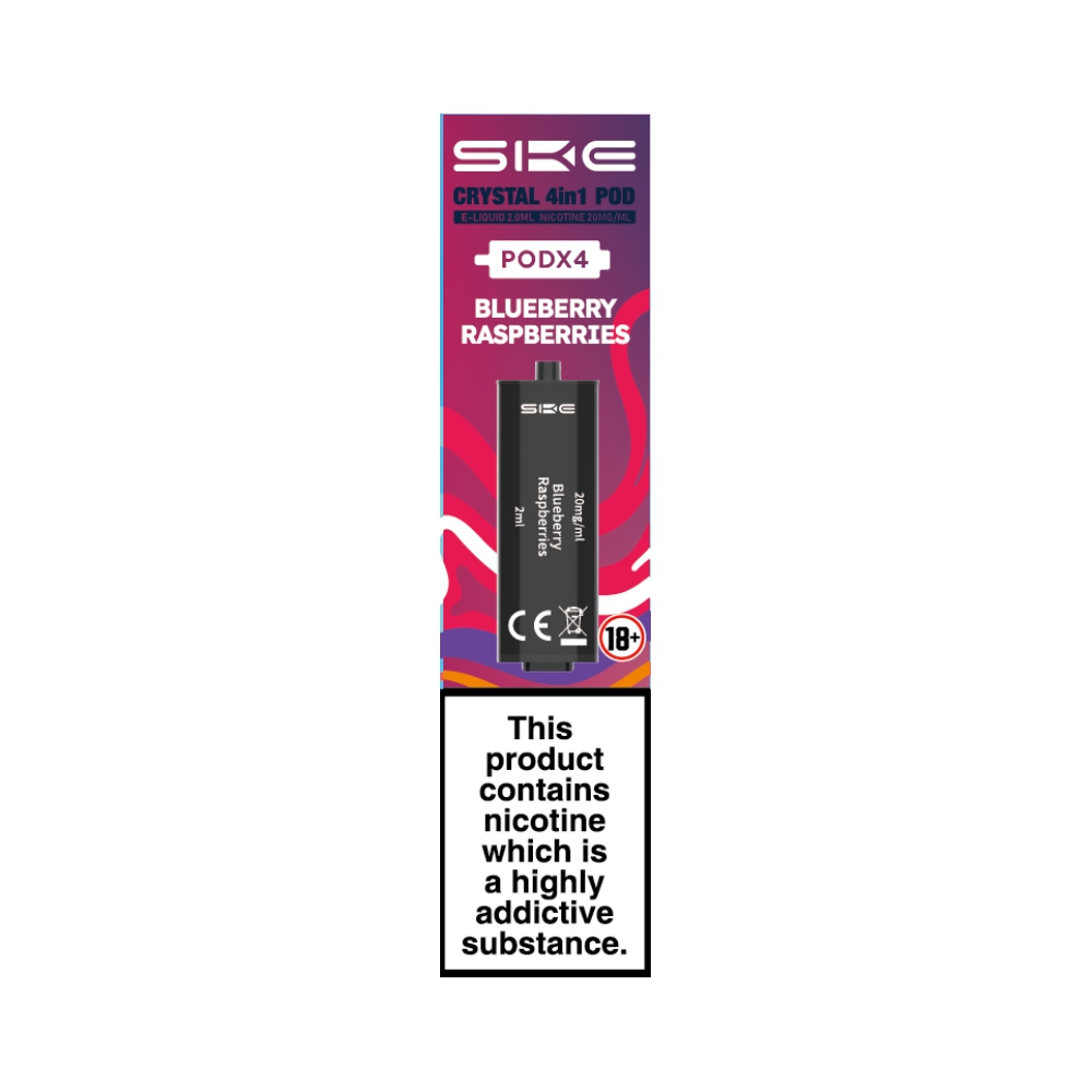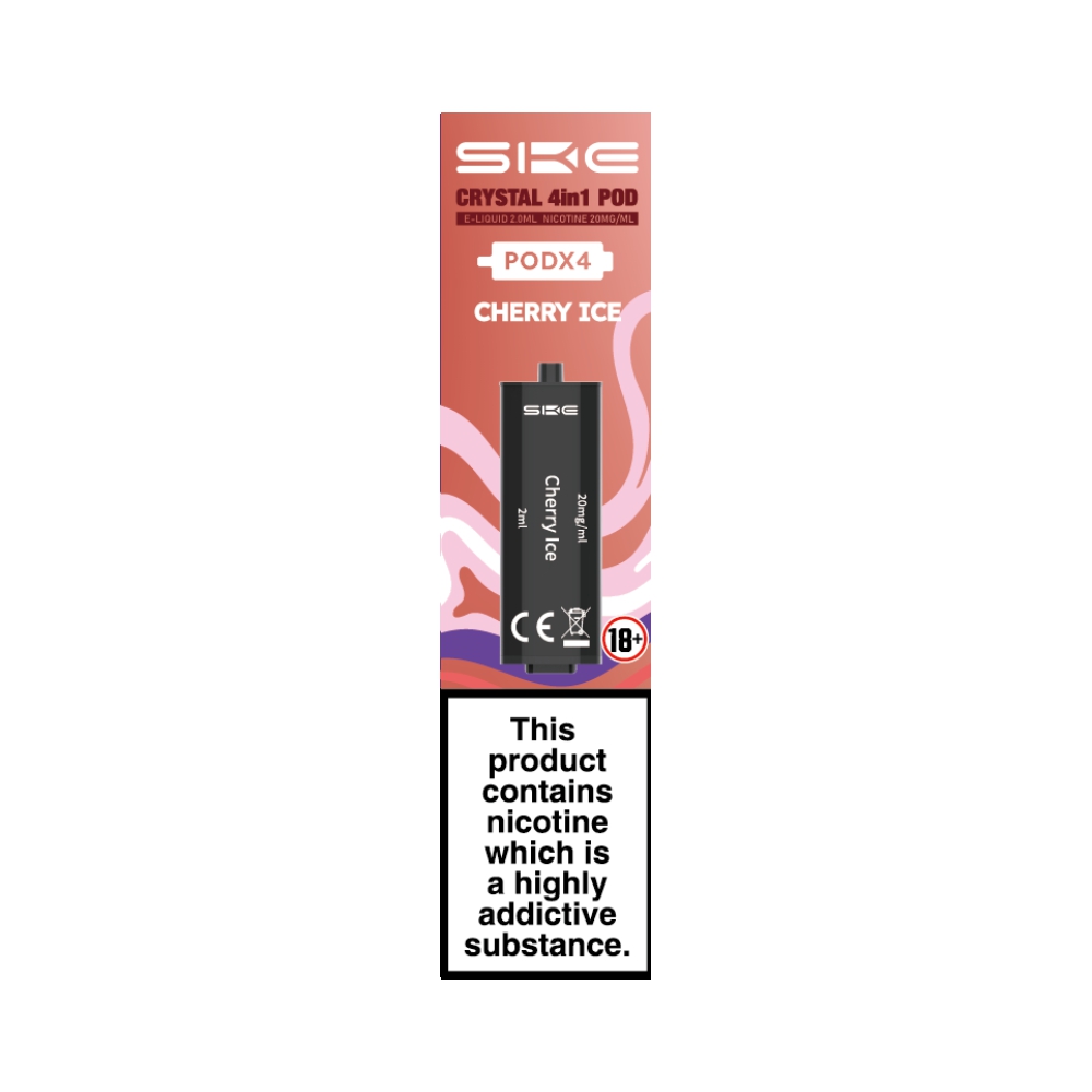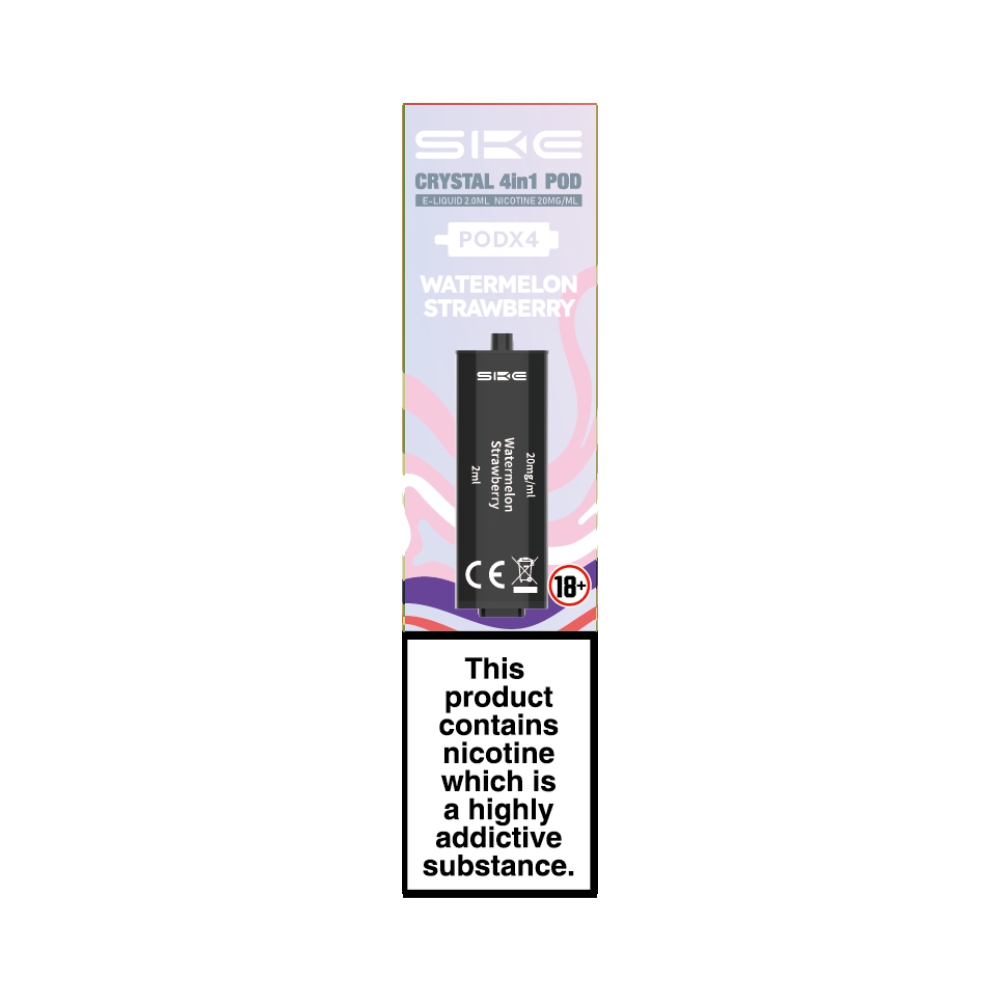 20 mg (2%) nicotine salt e-liquid makes up each replacement pod for the SKE Crystal 4in1 pod vape system. There are five multipack varieties of these pods, and each pack has four flavours.