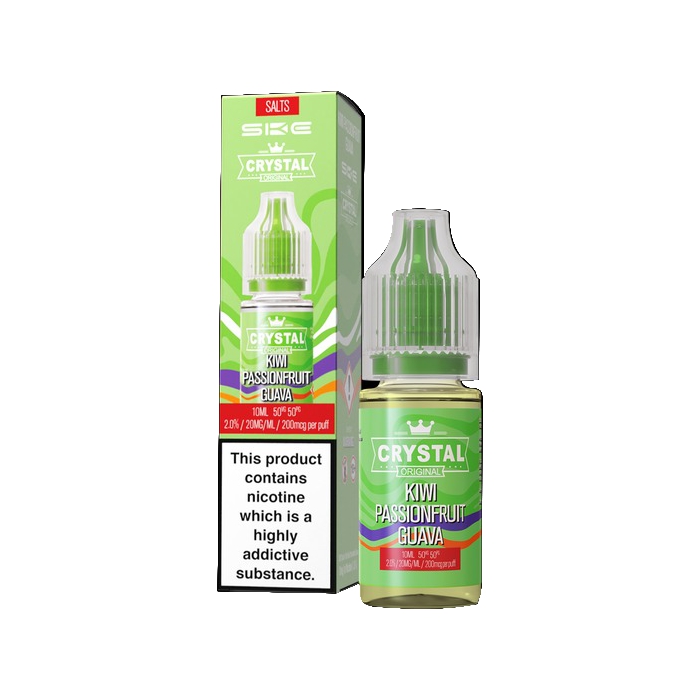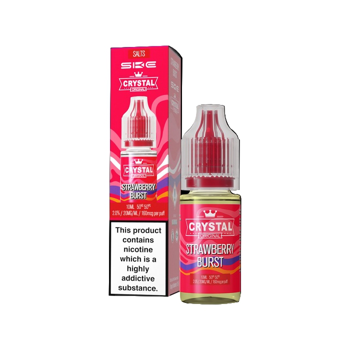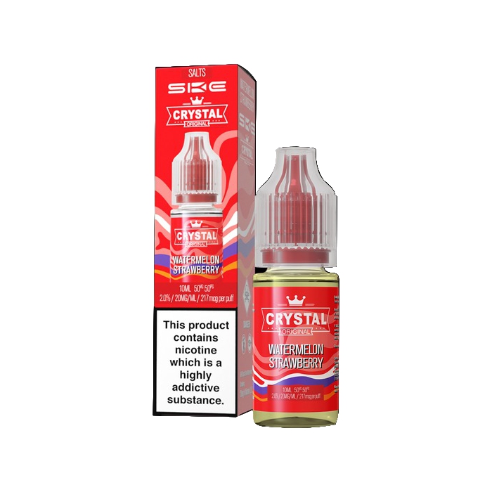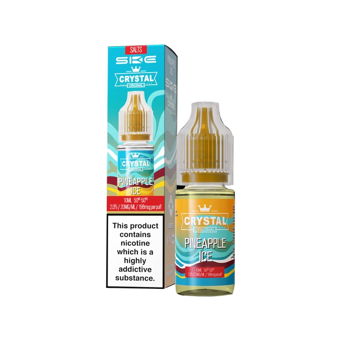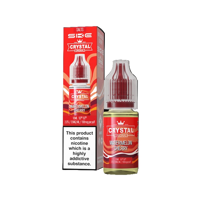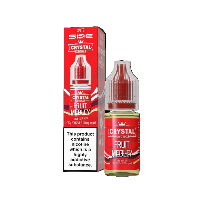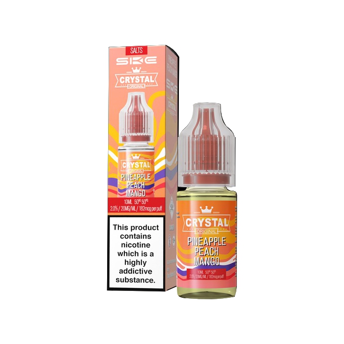 SKE makes Crystal Original nic salt vape juices, and this line has all the best flavours from their SKE Crystal Bar disposable vapes, but in bottled e-liquid form.