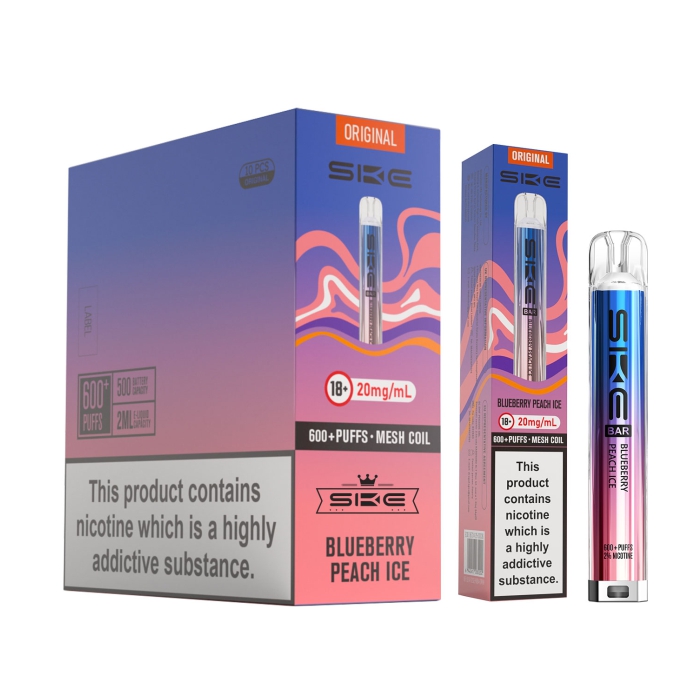 Blueberry Peach Ice: Delivers a sweet, fruity flavour in every puff with its combination of blueberry and peach notes. A blast of ice offers a cool blast on exhale.