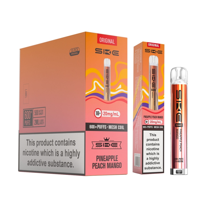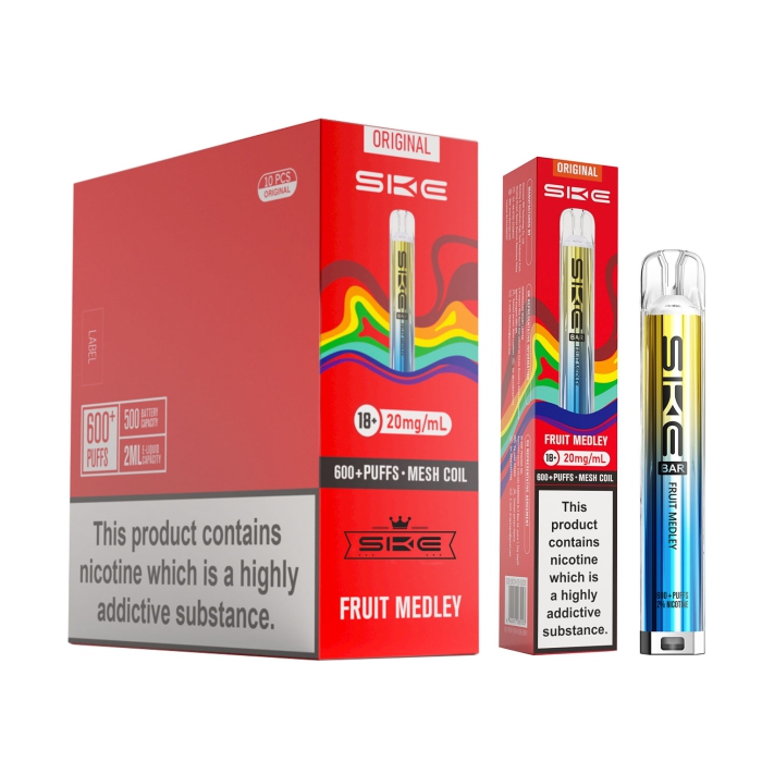 The SKE Bar pod kit is a little, simple vape that doesn't need much care. It's perfect if you want something that doesn't need much care. The kit comes with a built-in 500mAh battery that will last most vapers all day on a single charge.