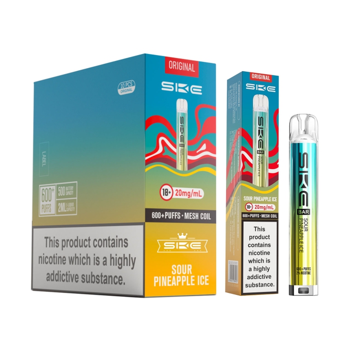 Sour Pineapple Ice: Delivers a bold, tropical vape with tangy and sour pineapple notes. A kick of ice on exhale offers a cold finish.